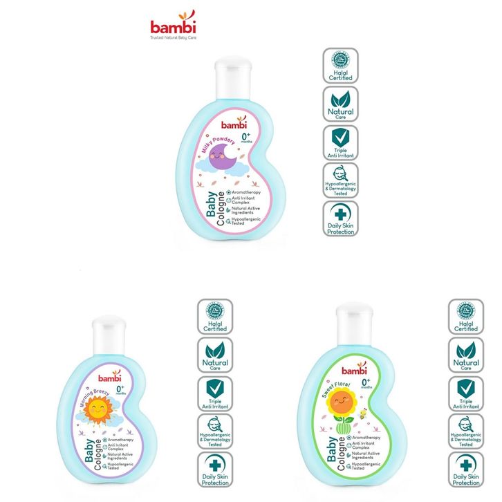 Parfum Bayi BAMBI Baby Cologne 100mili Tersedia 3 Aroma Rasa /Bambi Parfum Bayi 100mili
