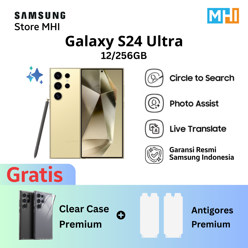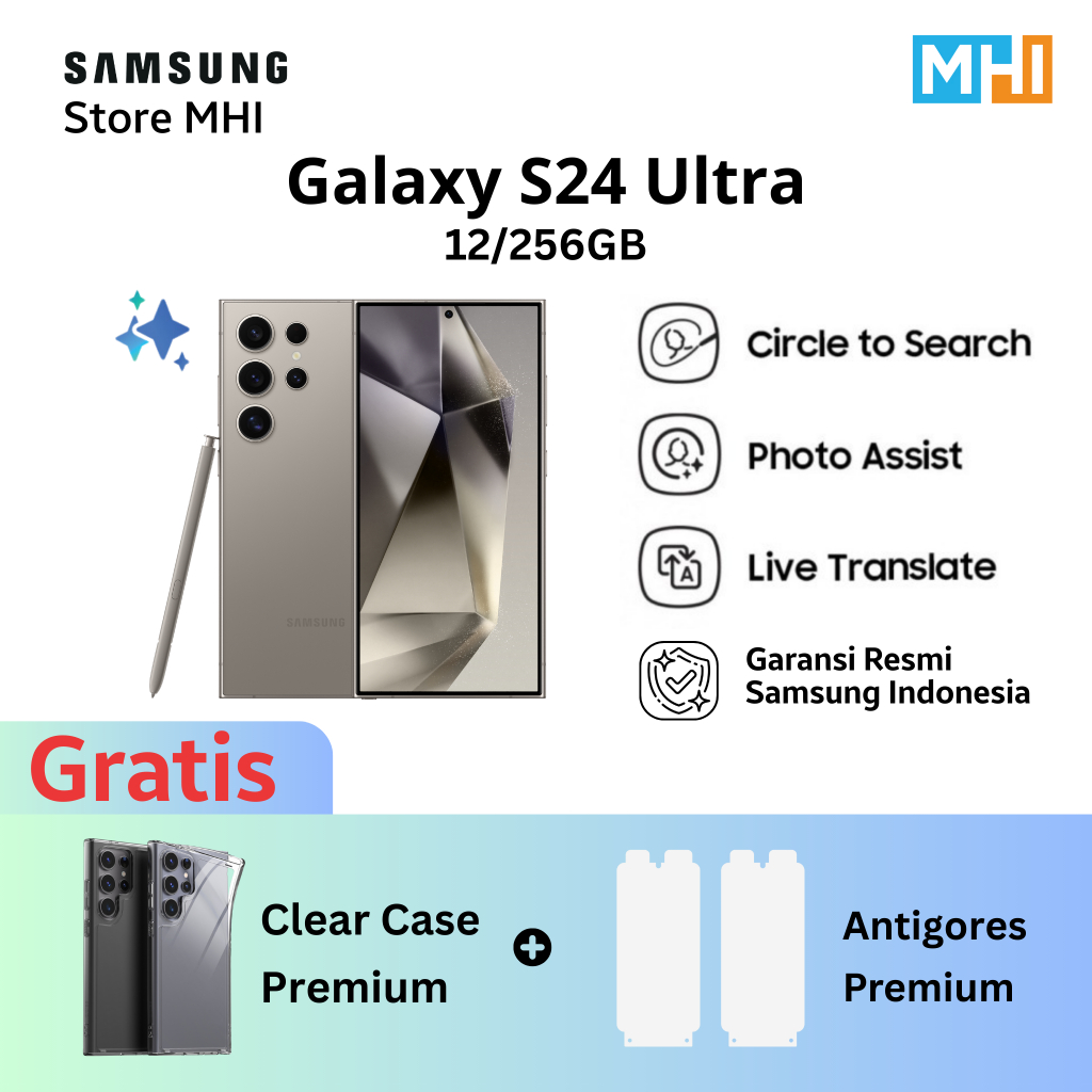 Samsung Galaxy S24 Ultra Handphone AI, Original, Kamera 200MP 12/512GB 12/256GB