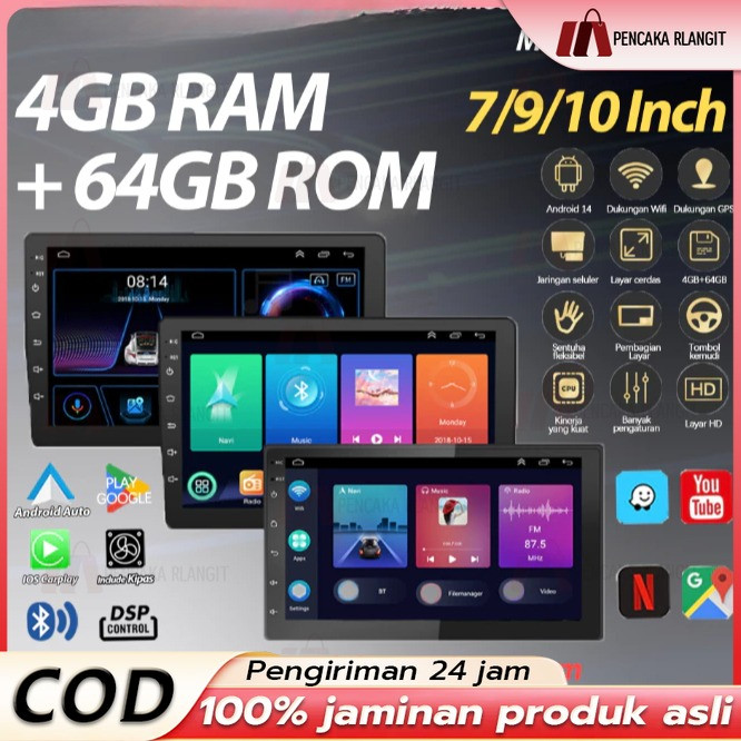 Head Unit 7/9/10 inci dual fan 6+64G head unit android 9 inch Android14 Dukungan WiFi GPS Berlaku untukr Semua mobil Navigasi Mobil IPS Screen HD 1080p Kamera belakang