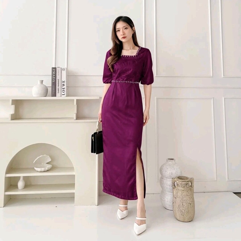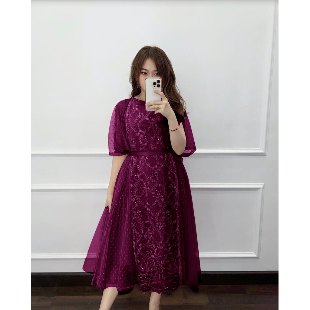 Gaun Pesta Warna Burgundy Elegan Terbaru – Dress Kondangan, Bridesmaid, Kebaya Modern, Dress Panjang & Midi Premium Bahan Berkualitas