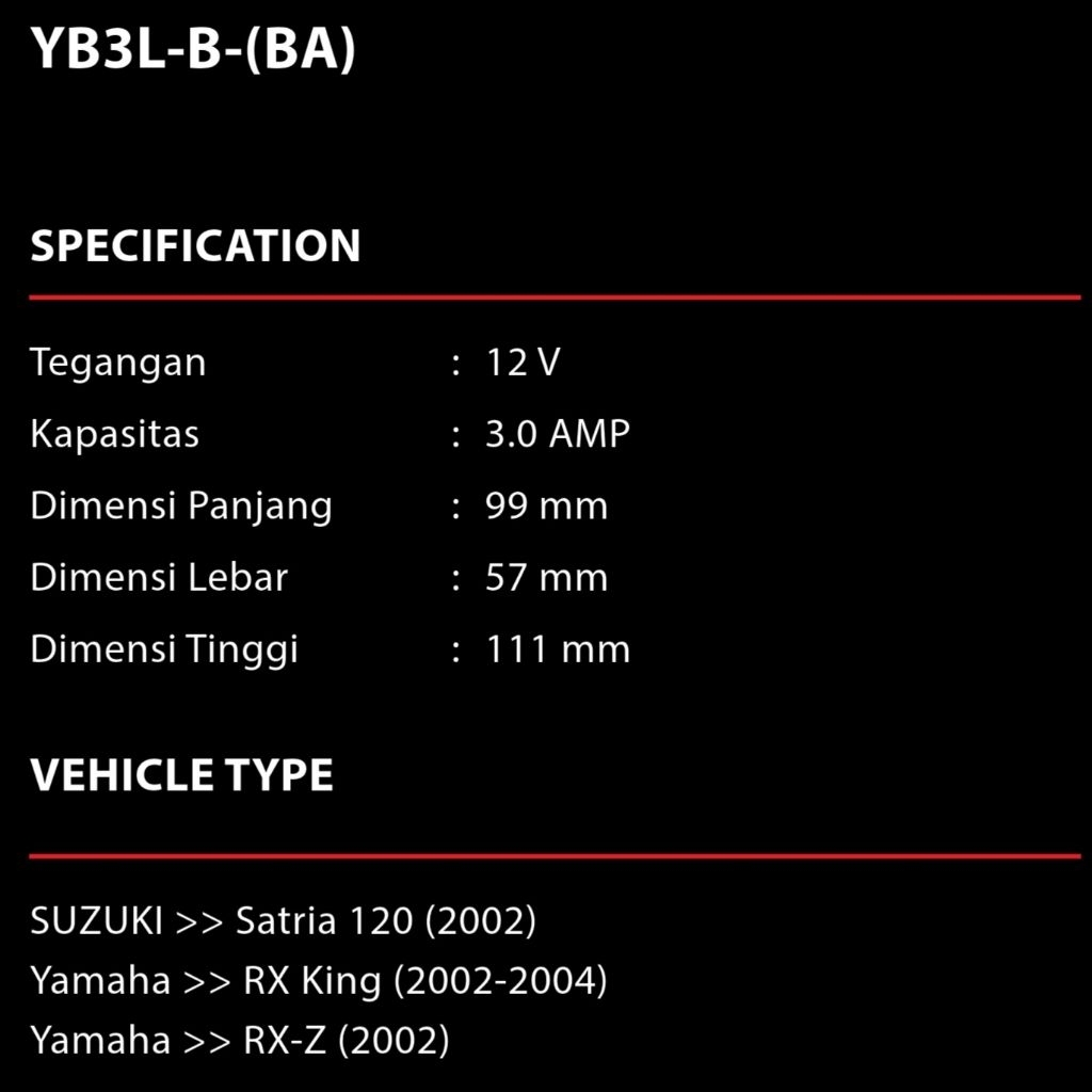 Aki Motor RX KING RX-Z RX SPECIAL YUASA YB3L-B Aki Basah 12volt 3Ah
