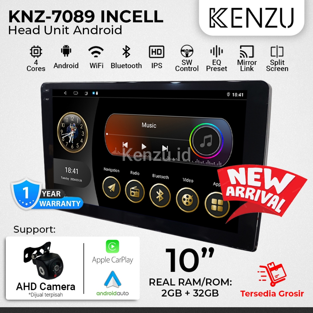 KENZU KNZ-7089 10" Head Unit Android Mobil 2DIN | 1+32 & 2+32, CarPlay, MirrorLink, QLED, NFC, AHD