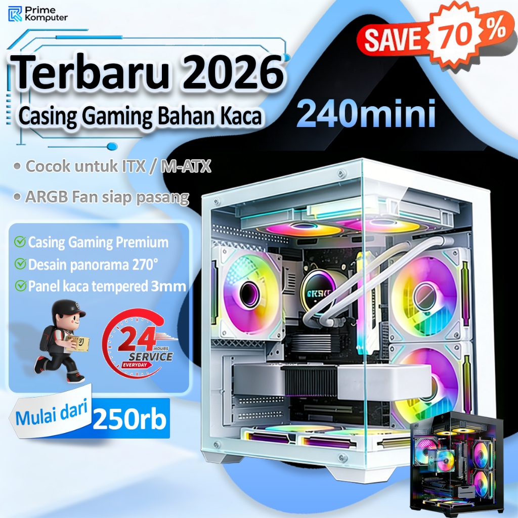 Prime Casing PC Gaming M-ATX / ITX Host Desktop Casing Untuk Kantor, Belajar, Hiburan Dan Permainan Komputer Side-Through Berpendingin Air 240MINI