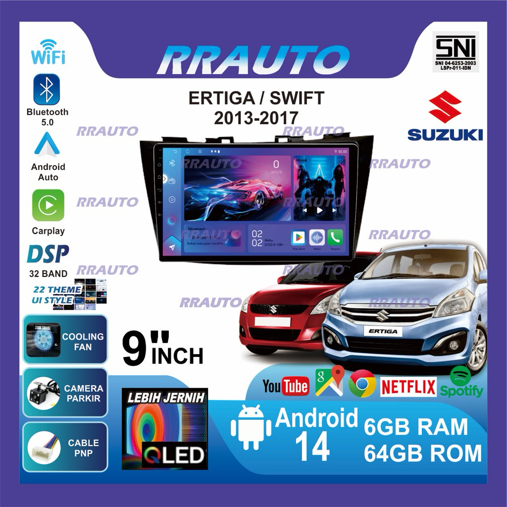 Headunit ERTIGA 2012-2017 | 6+64gb RAM ROM,QLED,Android 14,Apple Carplay,AndroidAuto Wireless,Wifi,bluetooth,DSP,Tmbol stir,Headunit Tape mobil terbaik 2025 (Bonus Kamera Parkir AHD & Socket PNP)