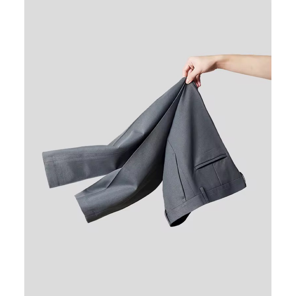 Loowes - Celana Kantor Pria Model Slim Fit Warna Hitam Bahan Semi Woll