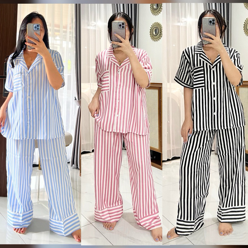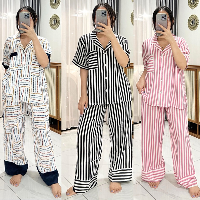 [BEST SELLER] WENGGO - EIRIN Set ( SALUR ) Rayon Premium One Set Kemeja Baju Tidur Celana Panjang Wanita Kekinian Celana Kulot