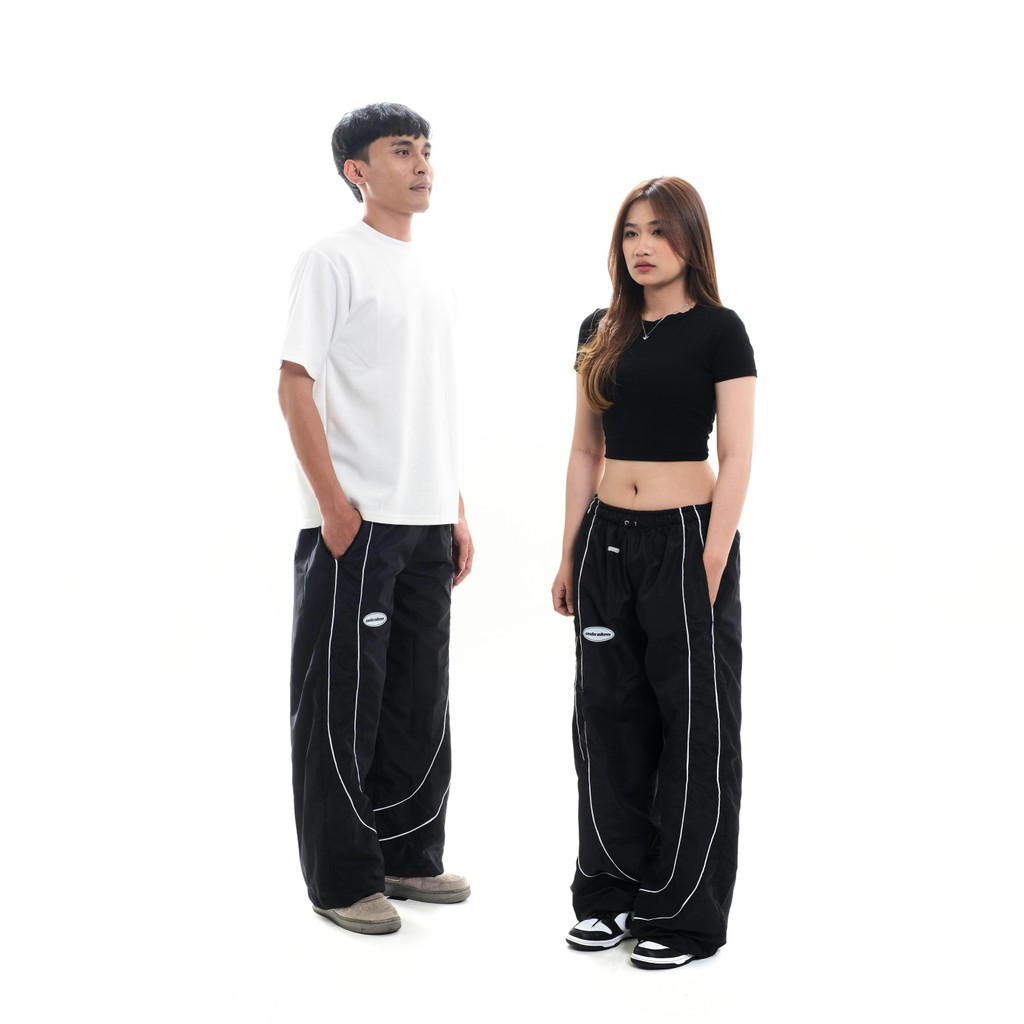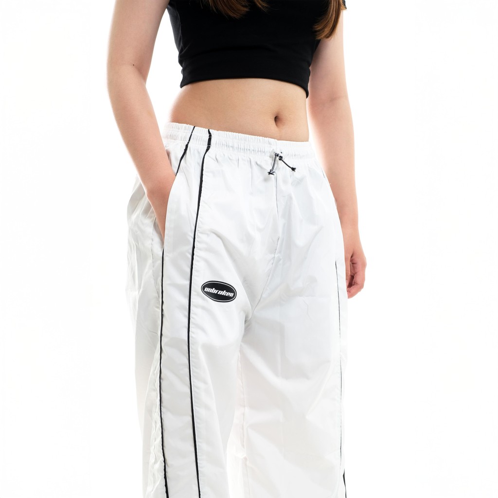 Unbroken Official Black And White Baggy Track Pants celana skena gomrong Casual