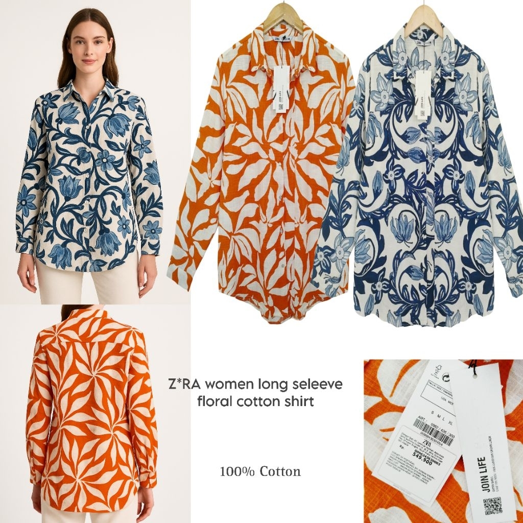 NEW ARRIVAL ZRA Women long sleeve floral cotton shirt / kemeja wanita branded fulltag / kemeja wanita terbaru