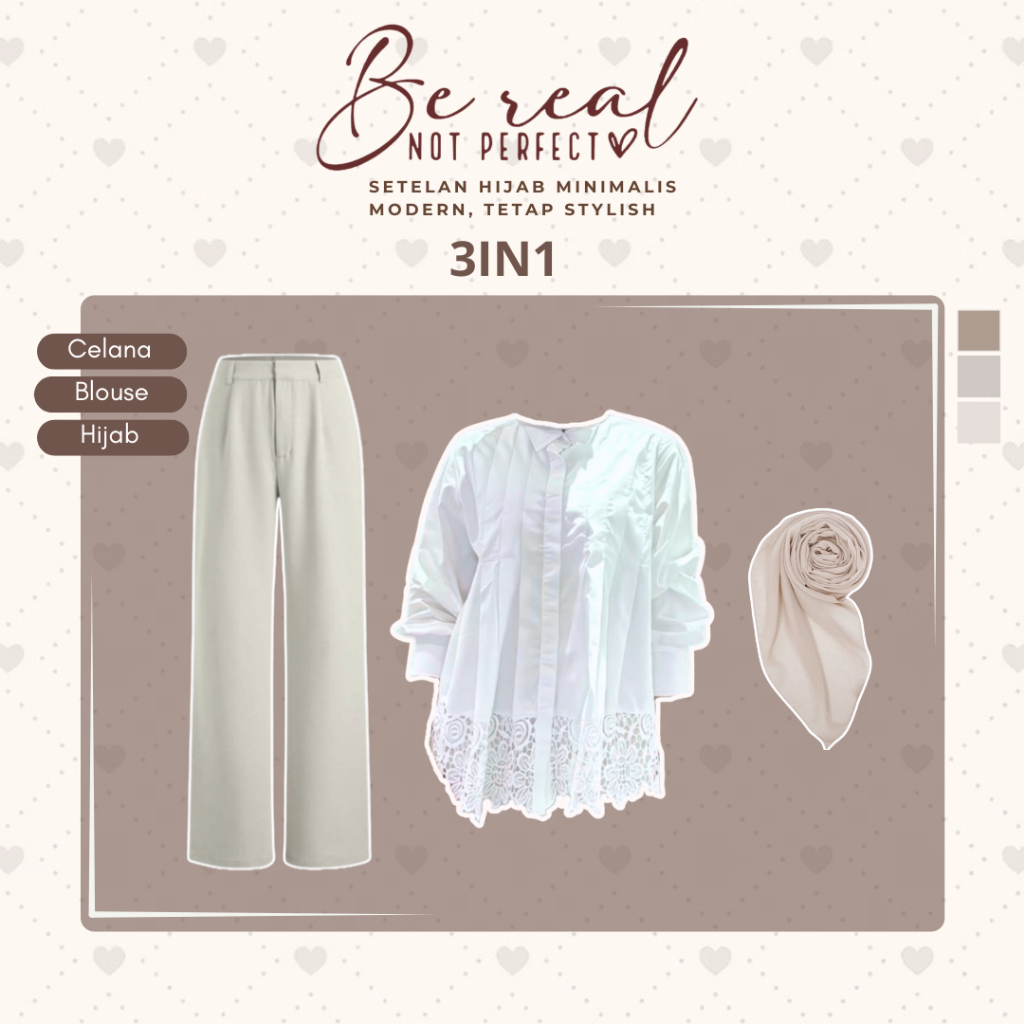 3in1 Setelan Wanita Elegan Kekinian (Blouse - Celana Knit - Jilbab Bella Square) OOTD Hijab - LS140
