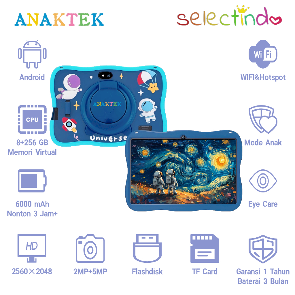 ANAKTEK Kids Tablet Astronaut 8+256GB WiFi Edition | Tablet Android | Tablet Anak | Tablet Edukasi