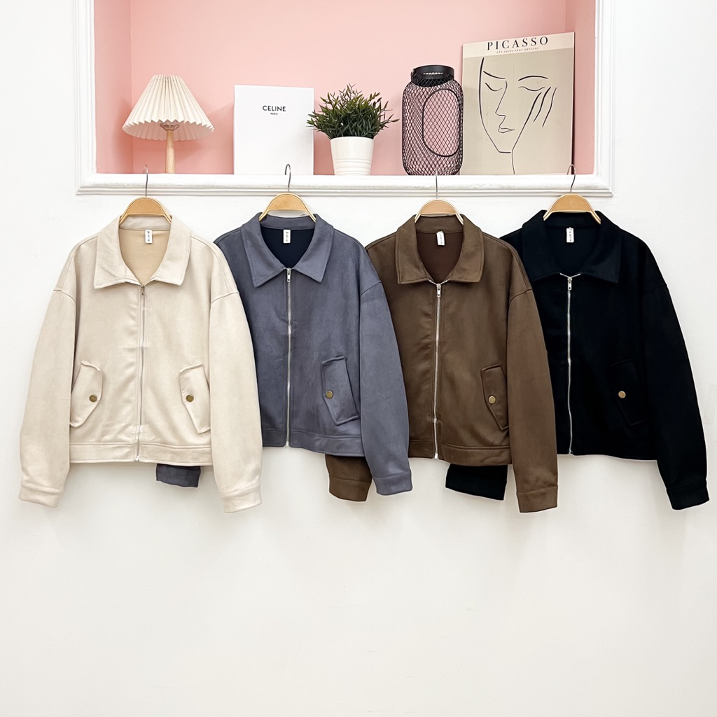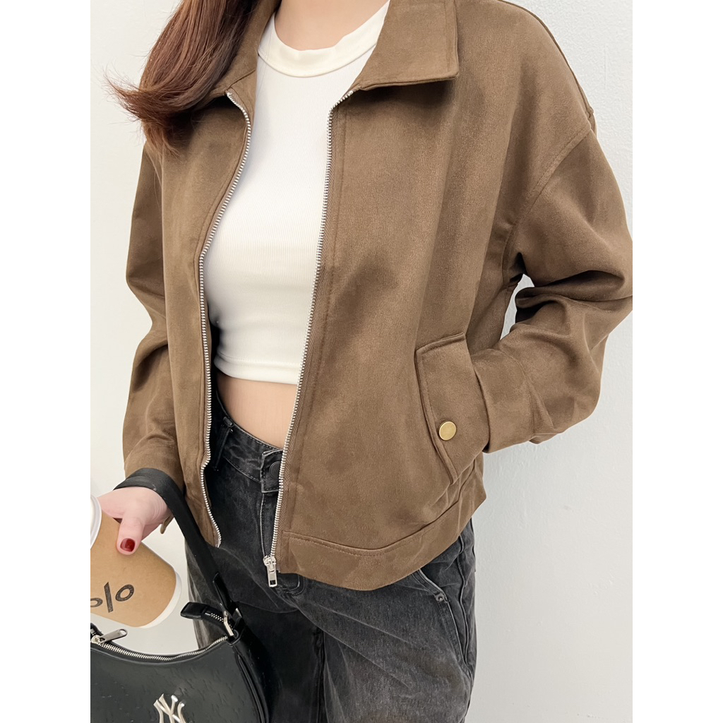 Jinny suede wanita special edition zipper polos