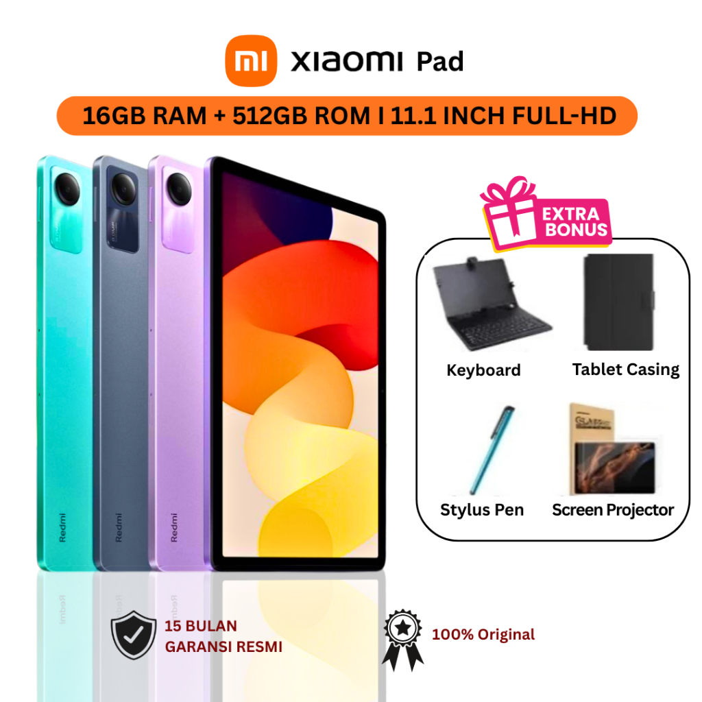 Xiaomi Redmi Pad SE 16GB+512GB | Snapdragon 680 | Layar 11” FHD+ | Baterai 8000mAh