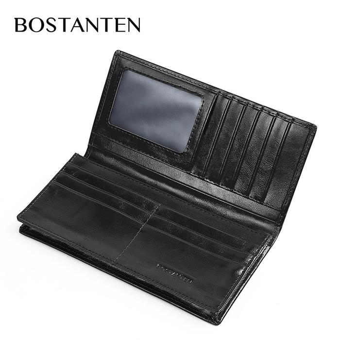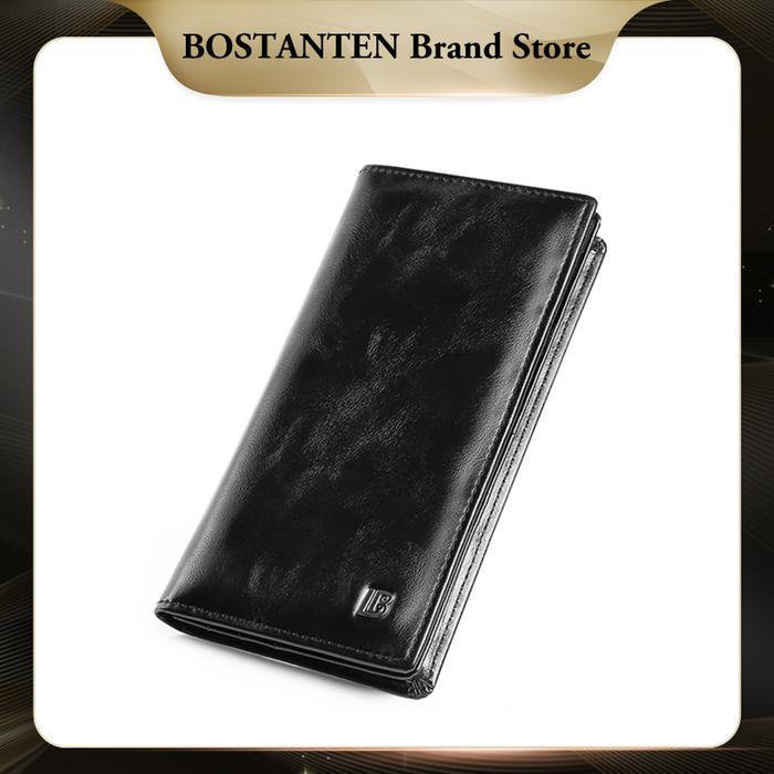 BOSTANTEN Dompet Lipat Panjang Pria Slot Kartu Kulit PU Warna Hitam/Kopi - Hitam