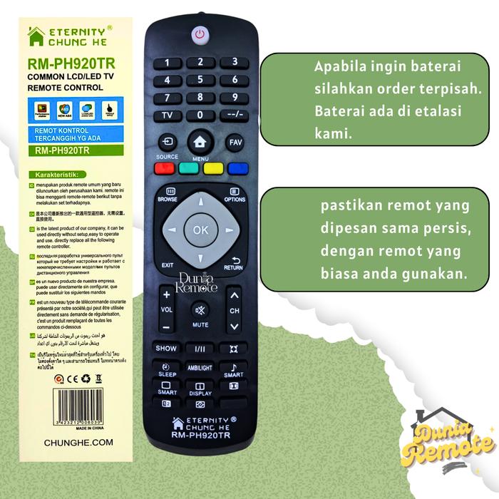 Remot Remote TV PENGGANTI UNTUK Philips LED LCD Multi Universal Philips 920tr Series tanpa setting