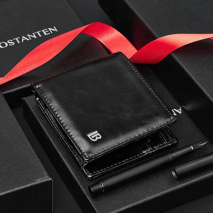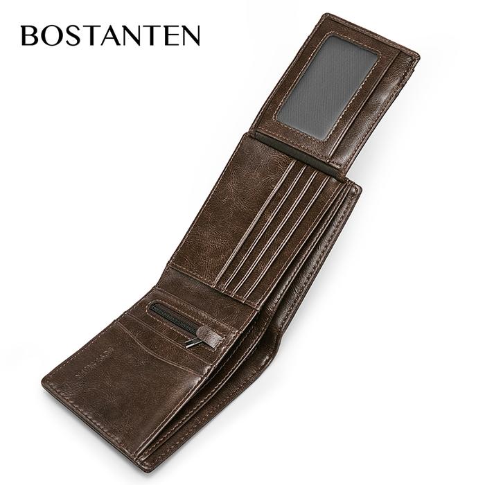 BOSTANTEN Dompet Lipat Pria Koin Ritleting Bahan Kulit PU Hitam/Kopi/Coklat - Hitam + BOX