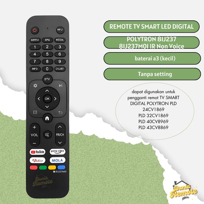 REMOTE TV PENGGANTI POLYTRON Smart Digital IR Non Voice 81j237 81J237M01 TV PLD 32CV1869 tanpa setting