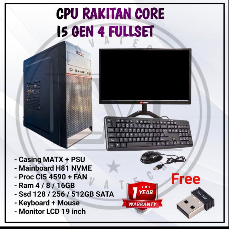 PC KOMPUTER FULLSET CORE I5 MURAH/ CPU RAKITAN FULLSET CI5 GEN 4 RAM 16GB / SSD 512GB SATA + MONITOR 19 INCH ( BARU )