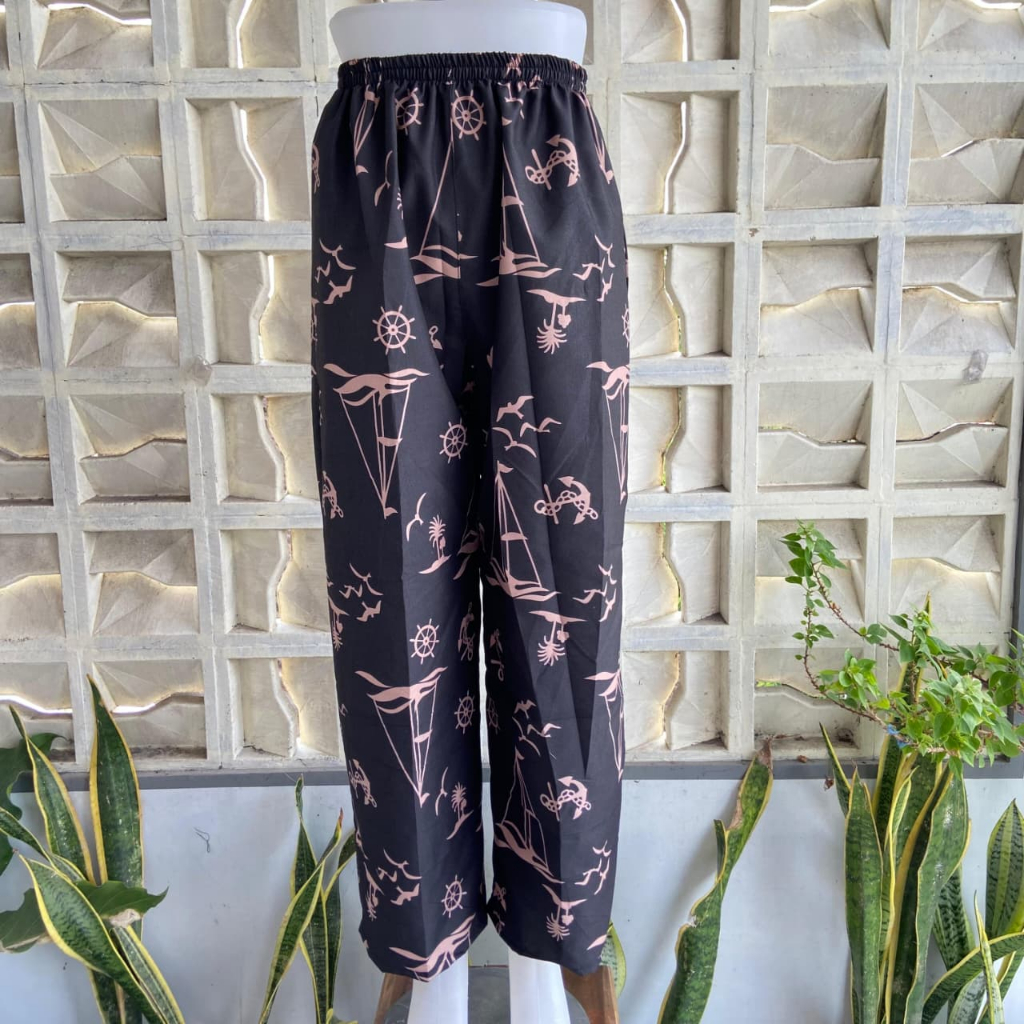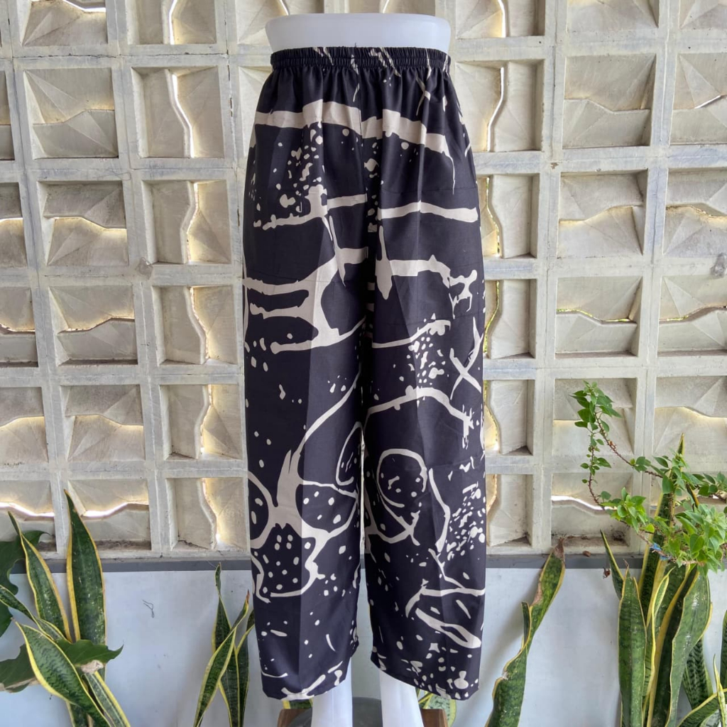 Celana Panjang Katun Pria Motif Abstrak Batik Model Pinggang Karet Elastis Bahan Nyaman Panjang 90cm Lebar 110cm Saku Gantung Kanan