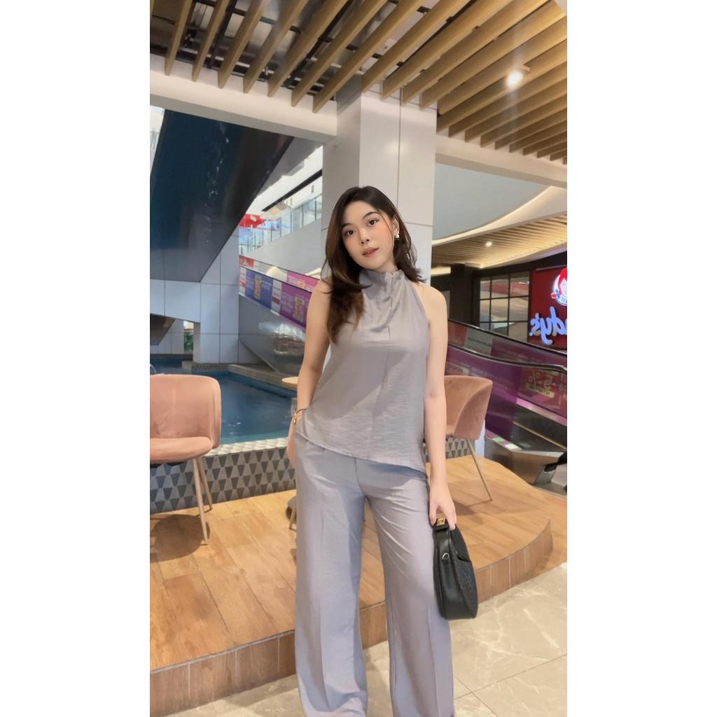 NEW GNY One Set - Setelan Korean Atasan dan Bawahan Wanita - Top Baju Wanita dengan Tali & Lengan Pendek - Bawahan Kulot Premium