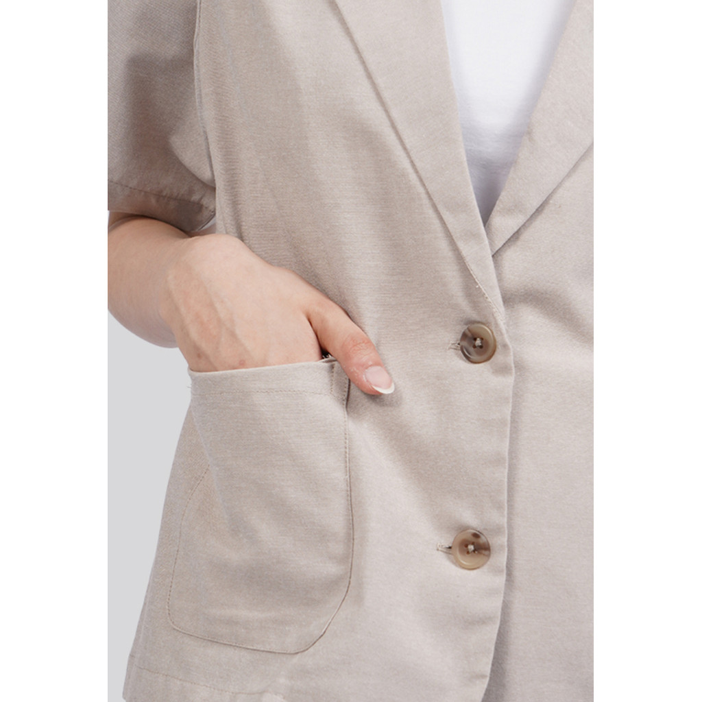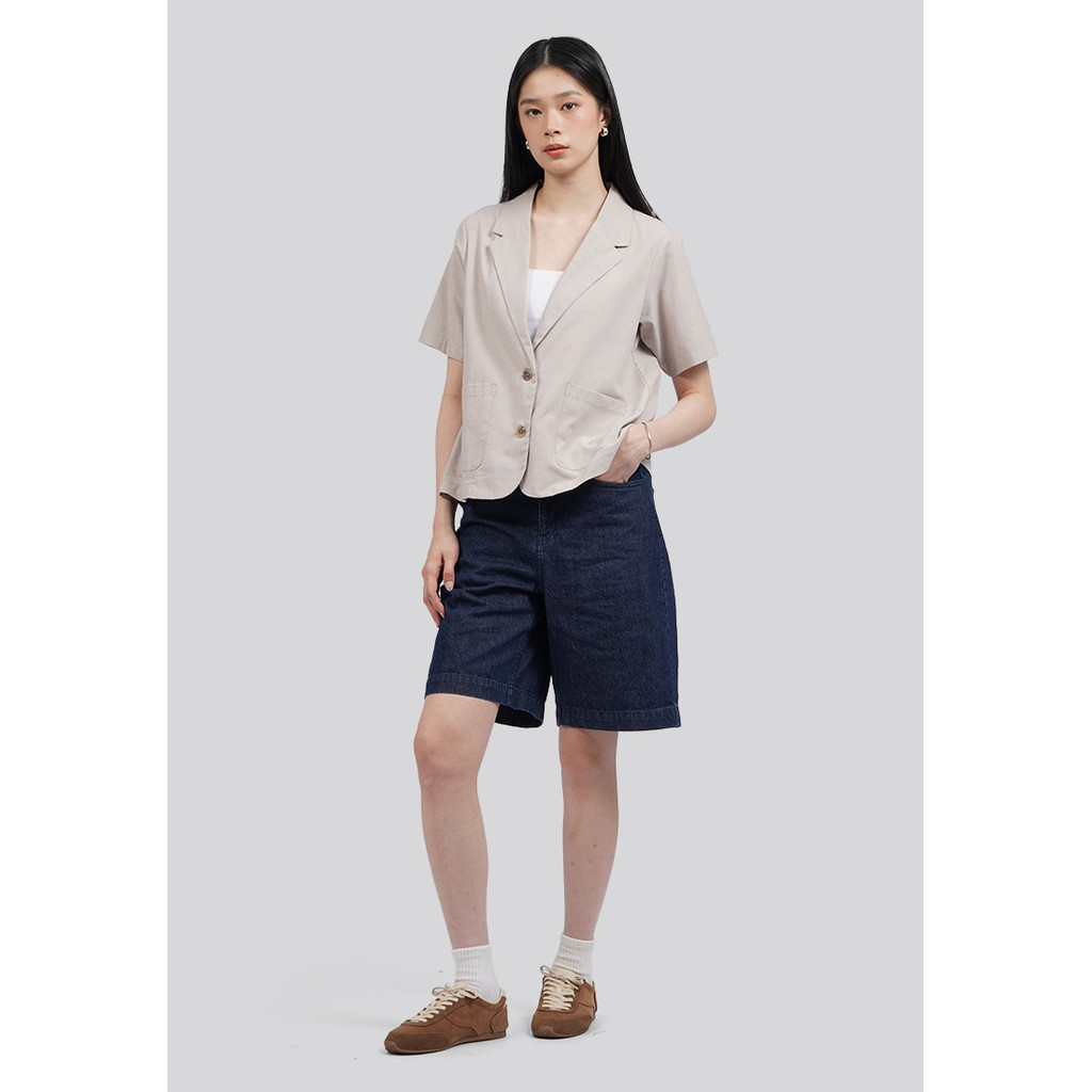 Executive Boxy Short Sleeve Blazer Chalk