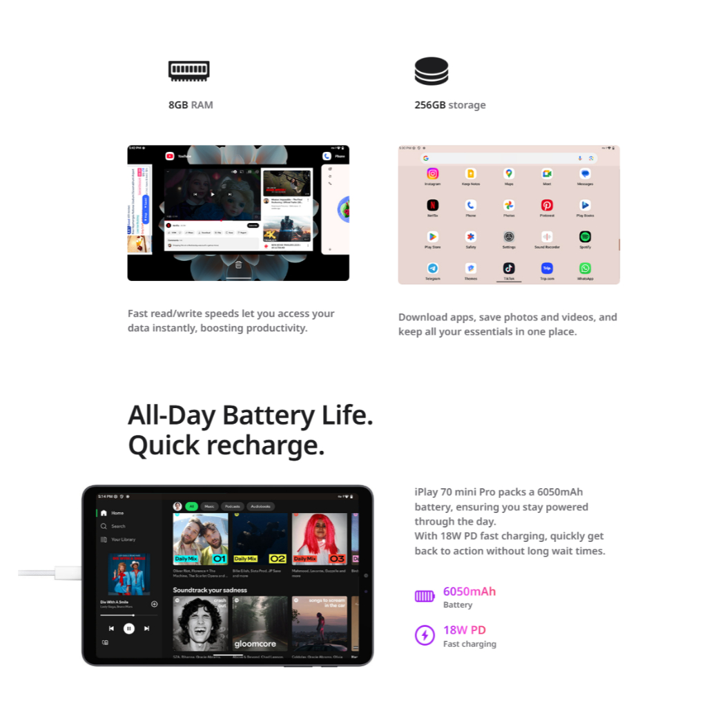 Alldocube iPlay 70 Mini Pro 4G 8/128G 8.4" UFS Dimensity WiFi6 90Hz FHD+ IPS Android 15