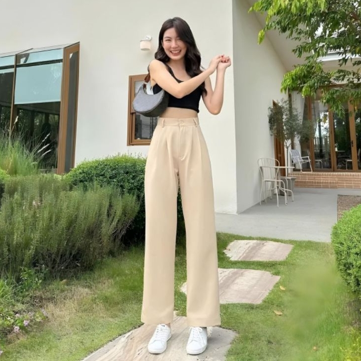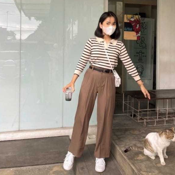 celana highwaist loose pants trousers celana kerja wanita kantor celana anti kusut celana kulot wanita Polyester