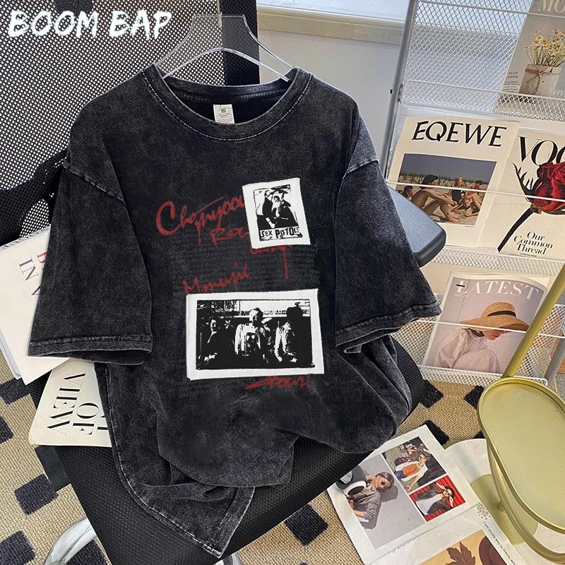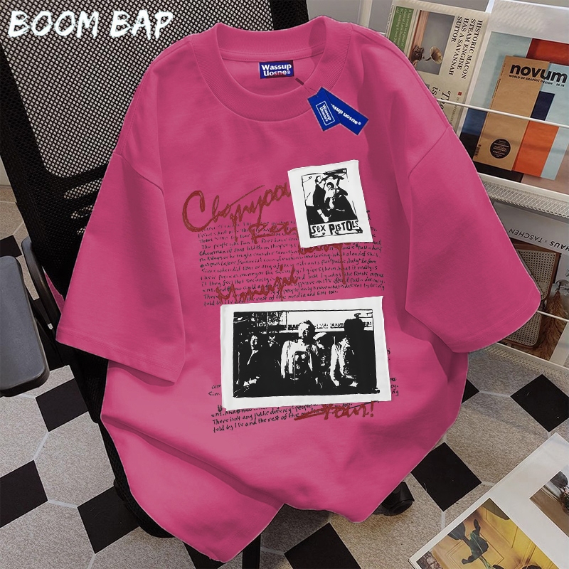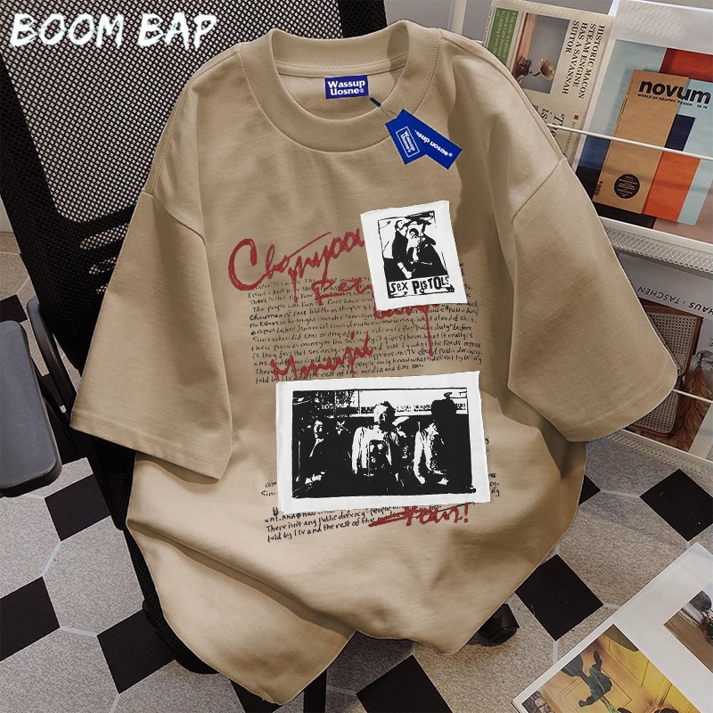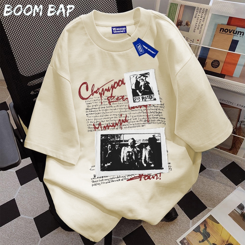 BOOMBAP American retro Style T-shirt Oversize Original foto Print top| Kaos Wanita Putih | Kaos pria dan wanita | Street Style 100 PERSENCotton top 10.8