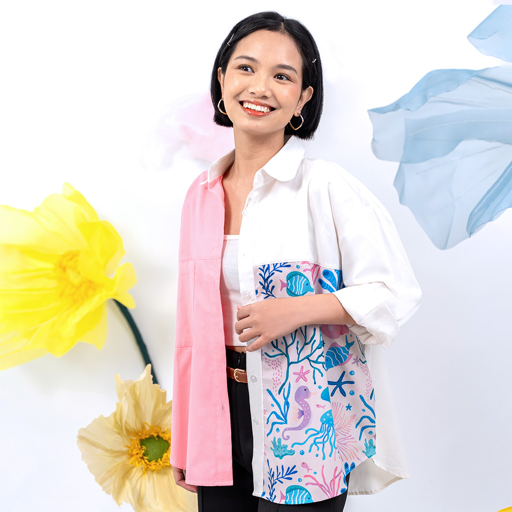 SOVLO Lyla Oversized Shirt - Kemeja Lengan Panjang Wanita - Atasan Wanita