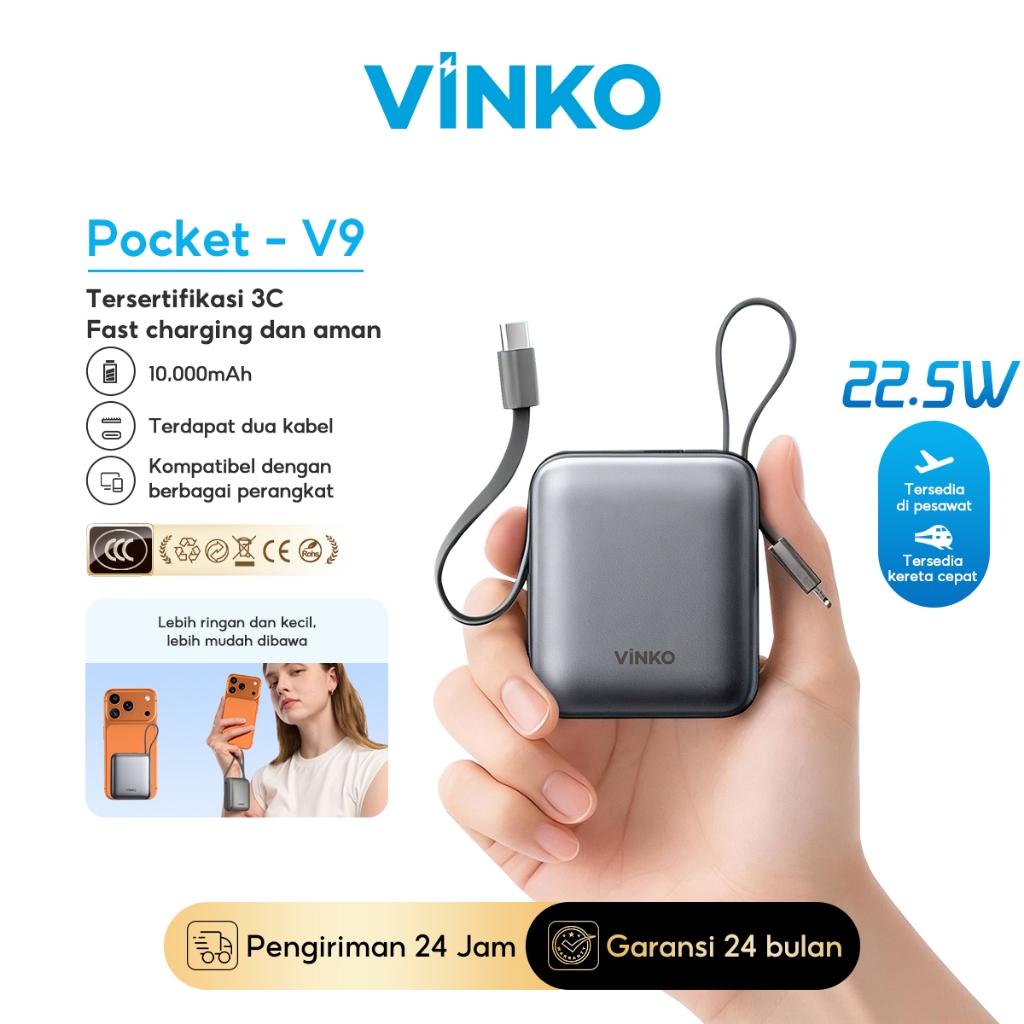 [Tersertifikasi CCC]VINKO V9 Pocket Powerbank 10000mAh 22.5W Fast Charging PD 3.0 Power bank With C+L Cable untuk iPhone