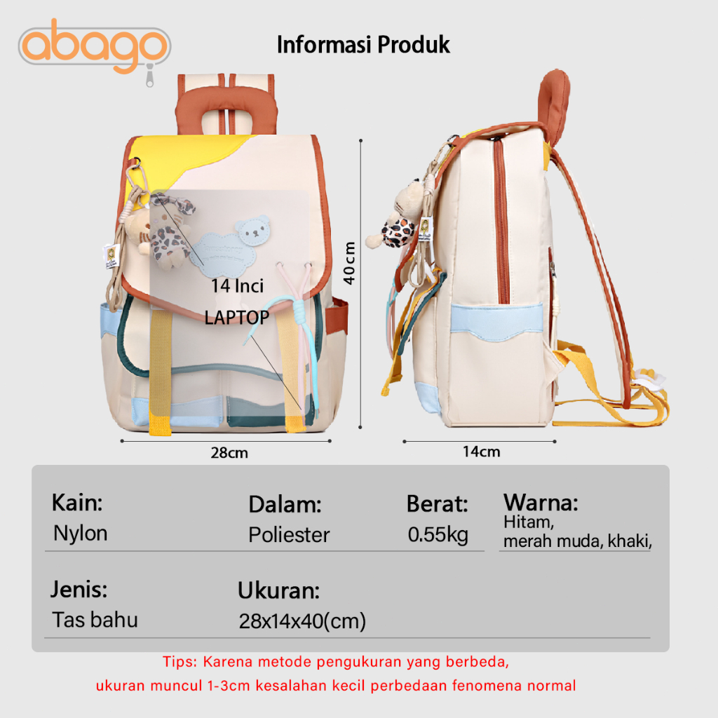 Abago Baru Tas Ransel Wanita Multifunction Sekolah Laptop Korea Style Rileks Siswa Kapasitas Besar