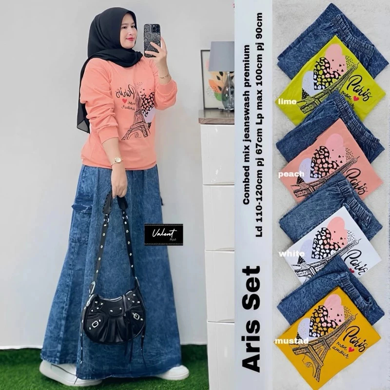 Set Rok Jeans Mix Combad Paris Setelan Rok Wanita Kekinian Terbaru