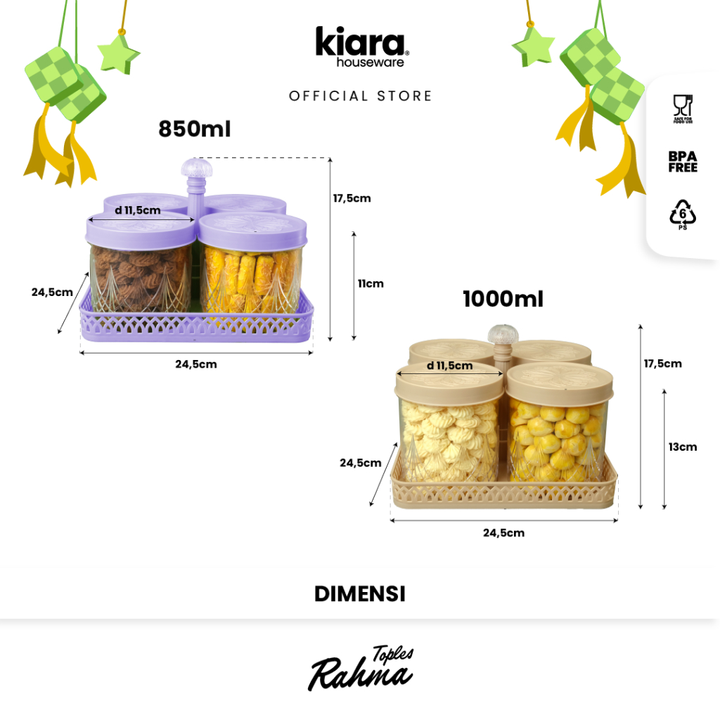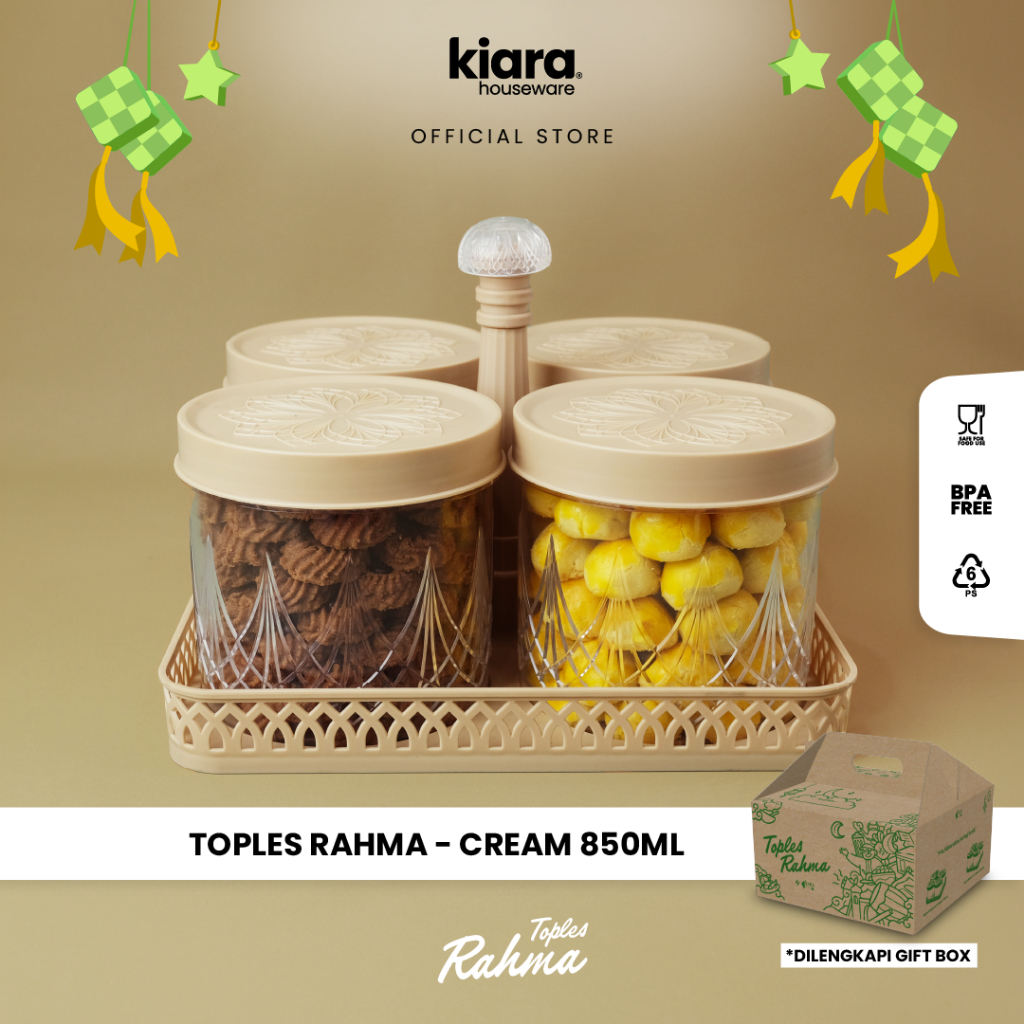 KIARA HOUSEWARE Toples Rahma Set Toples Mewah Lebaran Penyimpanan Kue Kering Lebaran Gratis Nampan dan Gift Box