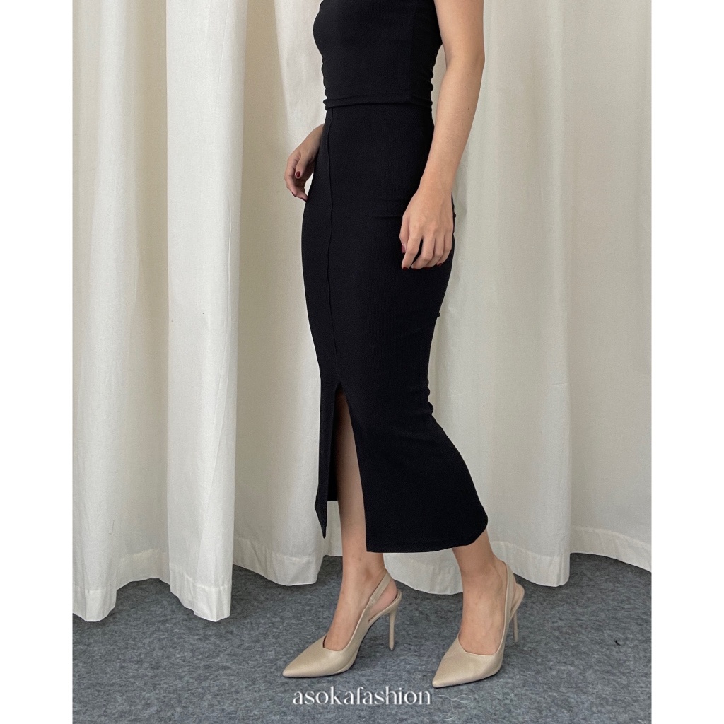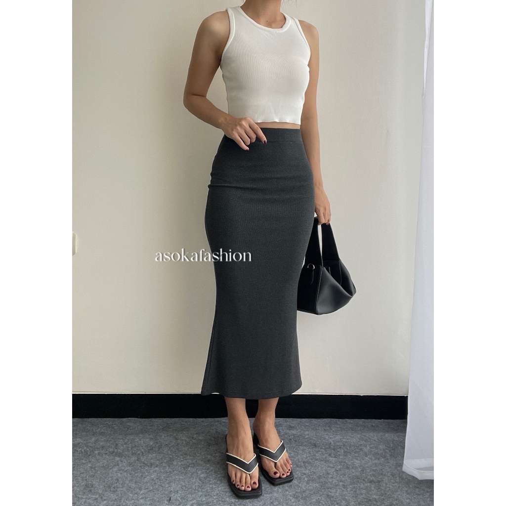 Asoka Sohee Skirt 3137 - Bawahan Wanita Rok Panjang - Women Skirt Knit Slit A-Line Midi