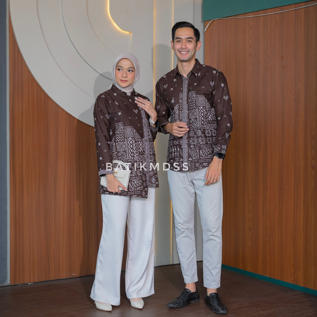Atasan Batik Couple Pria Wanita Blouse Dan Kemeja Ekslusive Lapis Trikot “Layla Coklat Mahogani”