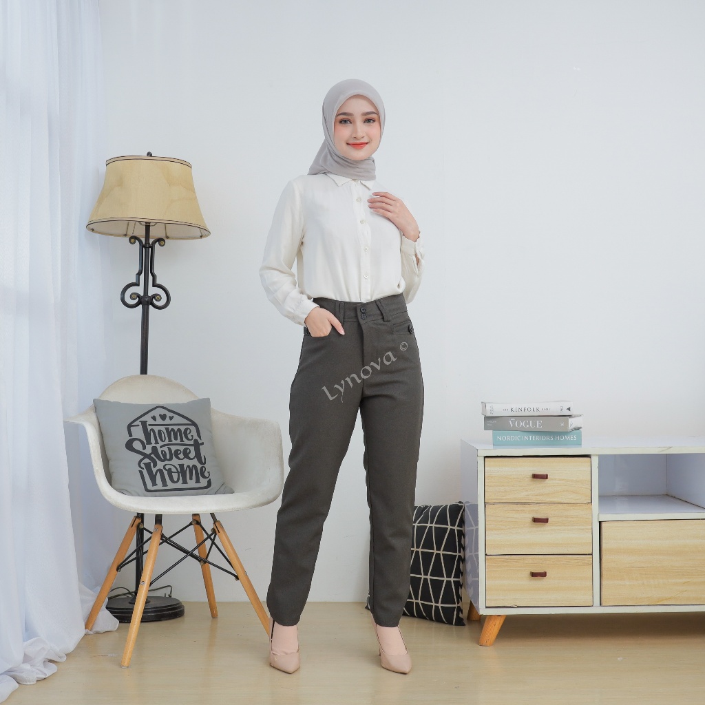 Celana Kerja Wanita Celana Bahan Wanita Kerja Jumbo Model Pinggang Reseleting dan Pinggang Karet Bahan Gracella