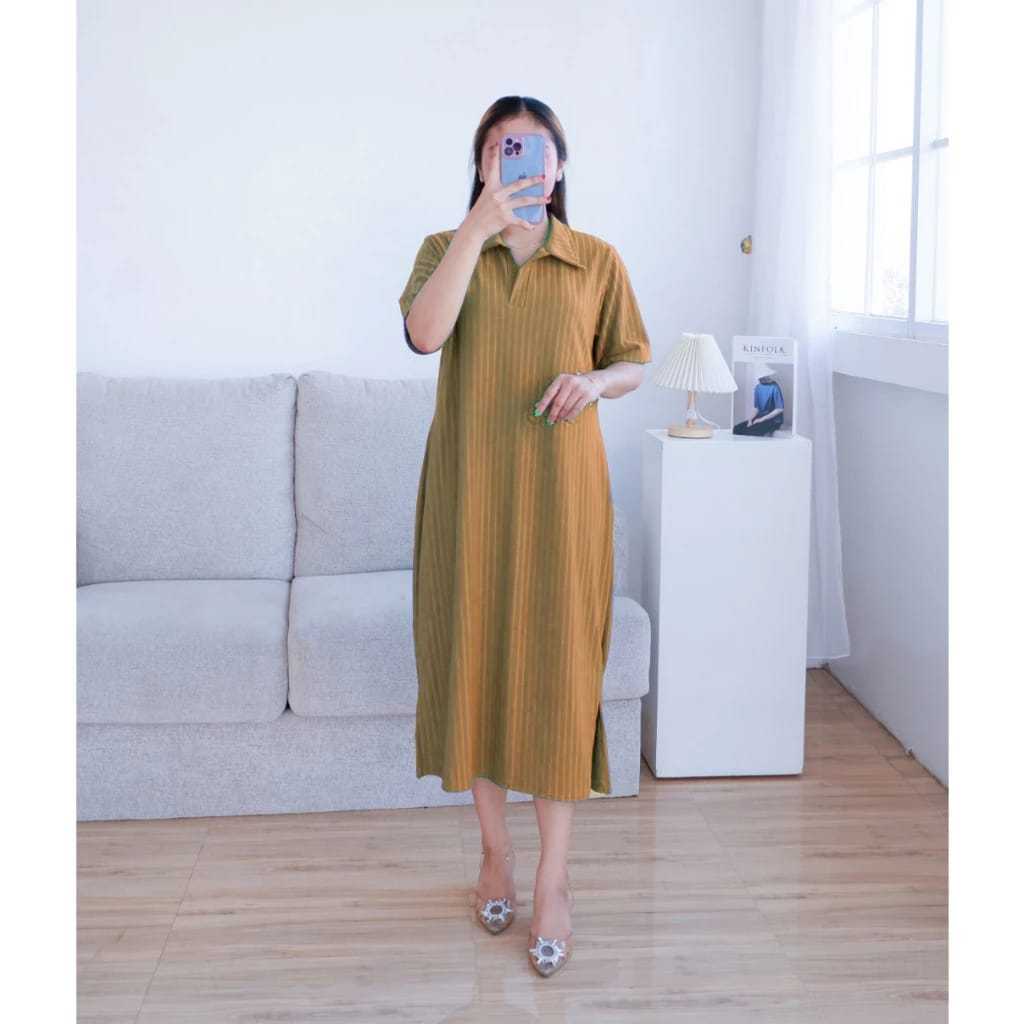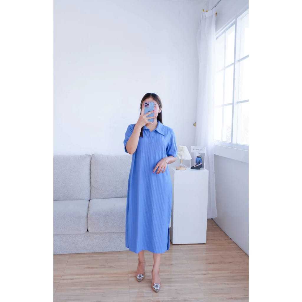 Amber Slit Dress Knit - Dress Wanita - Dress Midi - Dress Kerah - Long Tunik - Dress Murah - Dress Kekinian