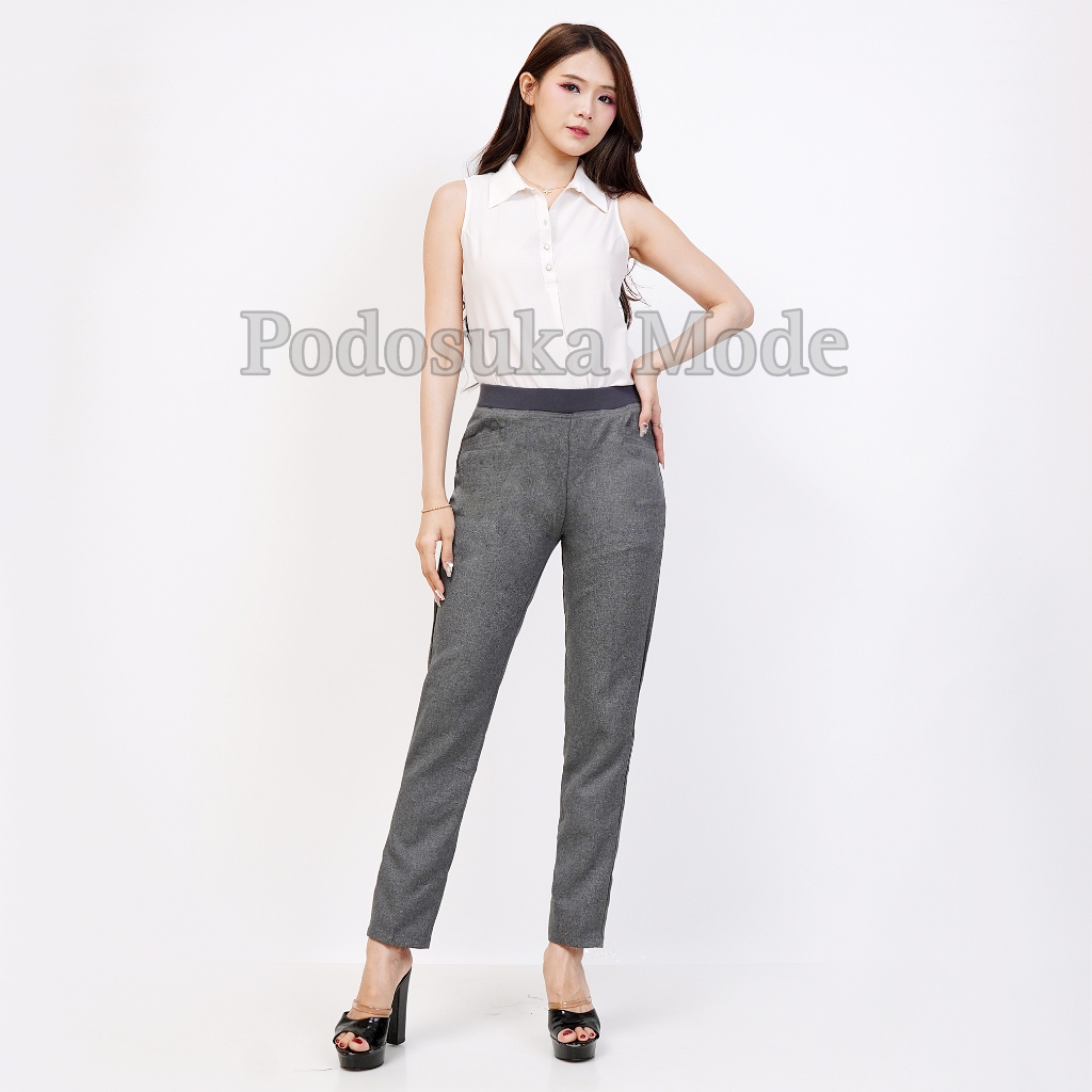 Celana Bahan Wanita Pinggang Karet Kerja kantor Kuliah Formal Premium