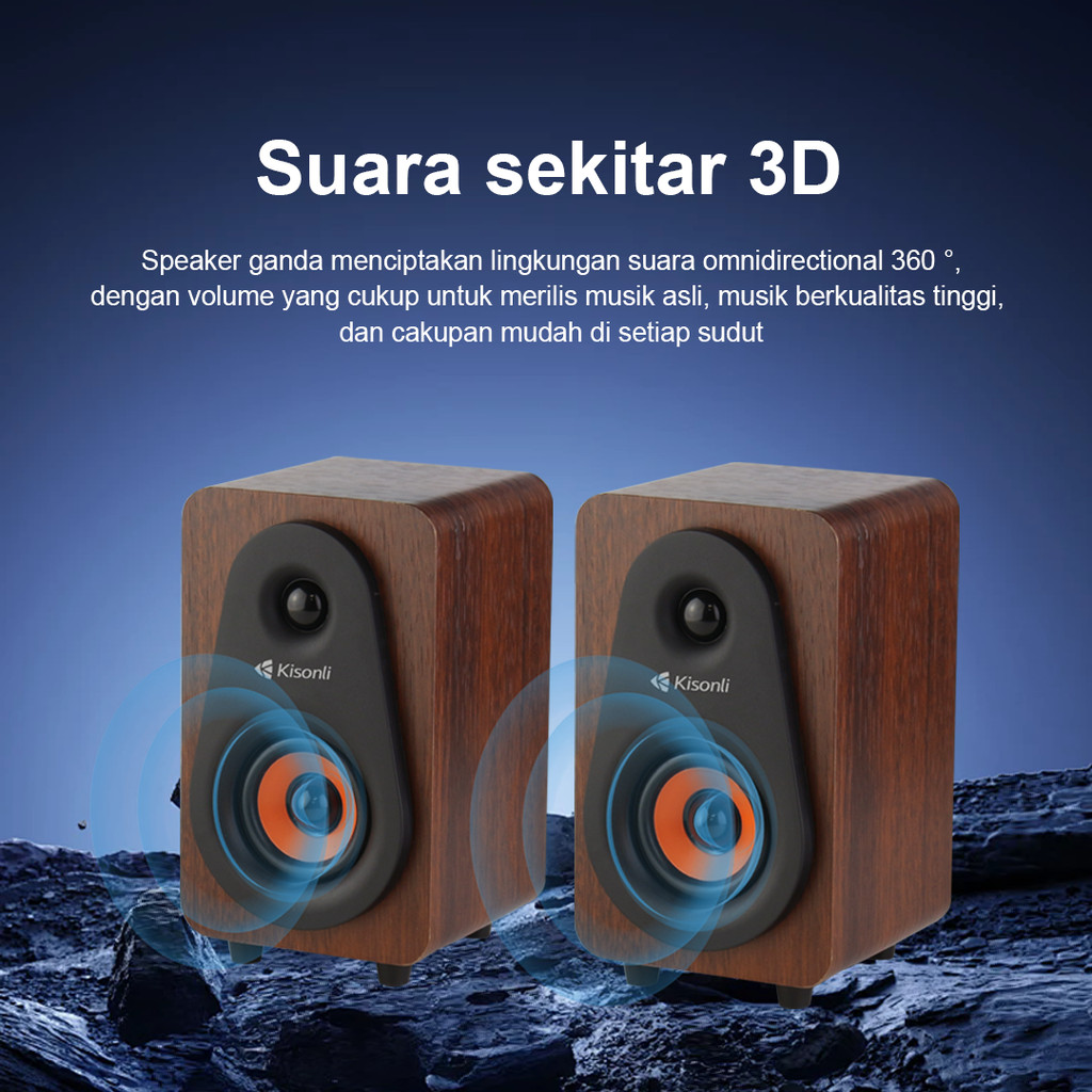 KISONLI Speaker Komputer/Laptop Motif Kayu T009 Speaker PC Dekstop Multimedia Strong Bass