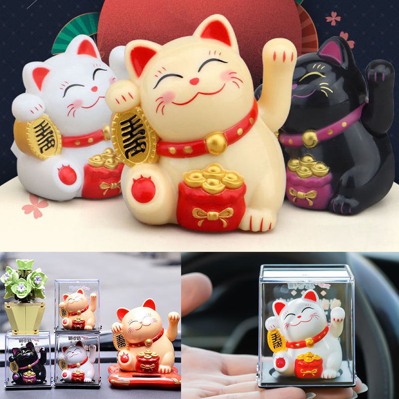 CARTOO Kucing Keber8ntungan Mini/Ma7eki Neko Lucky Cat/Kucing Hoki Pajangan Mobil Ma8eki Neko Fuk Tatakan 8cm Dashboard