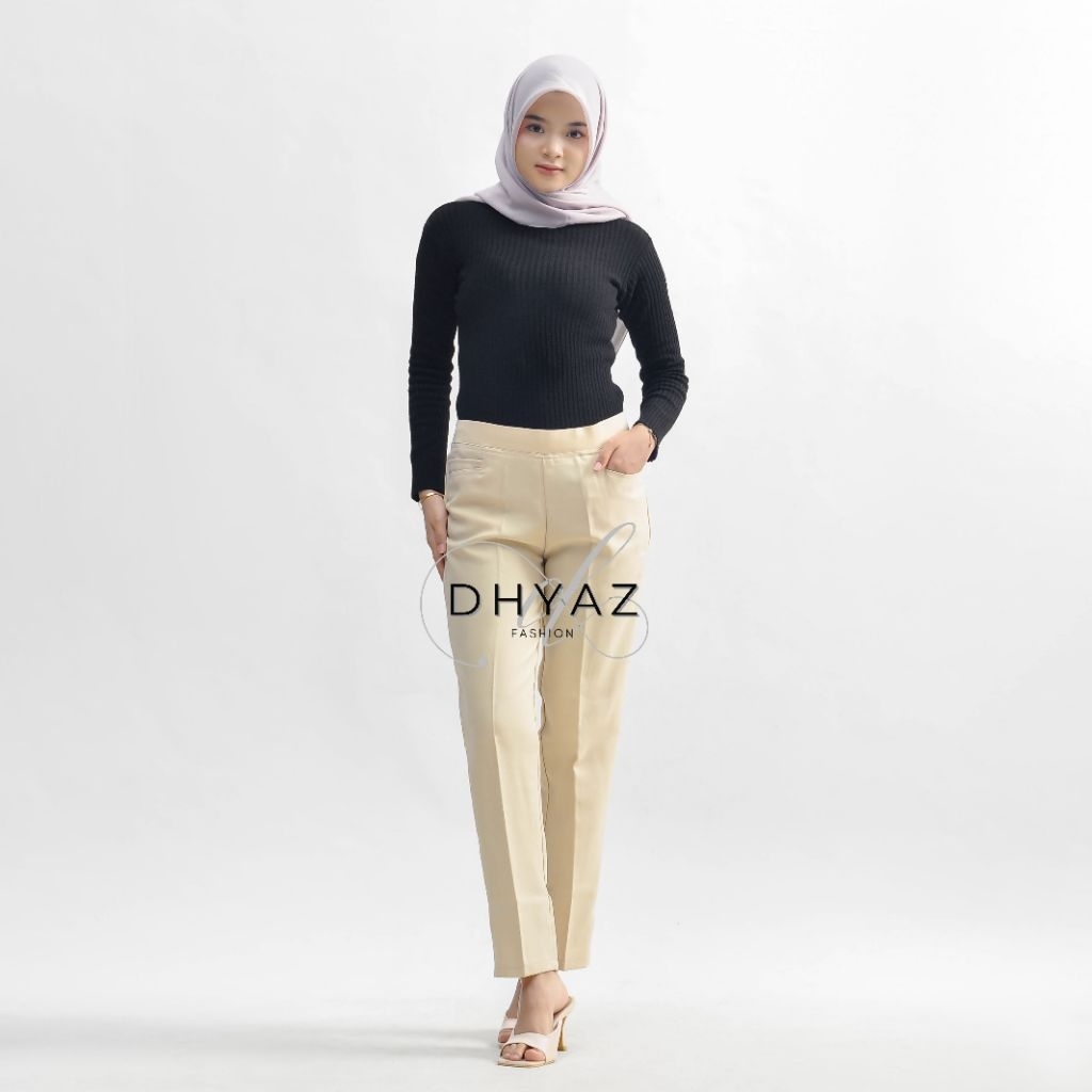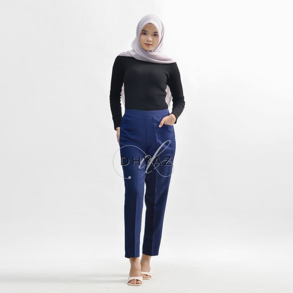 Celana Kerja Formal Wanita Pinggang Karet Slimfit Celana Panjang Wanita Anti Kusut Semi Woll