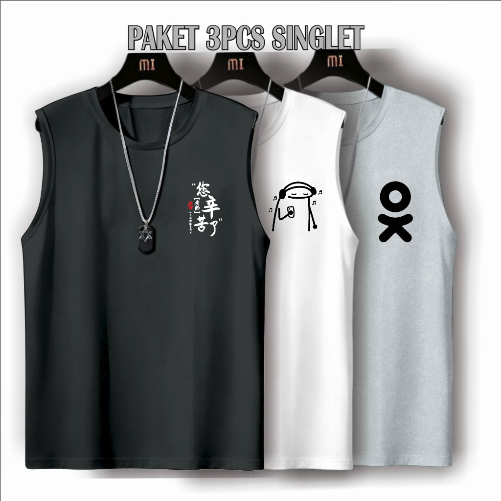 PAKET HEMAT Kaos Singlet Distro Paketan 3 pcs 50ribu Singlet Santai Gym / Paketan Singlet Premium