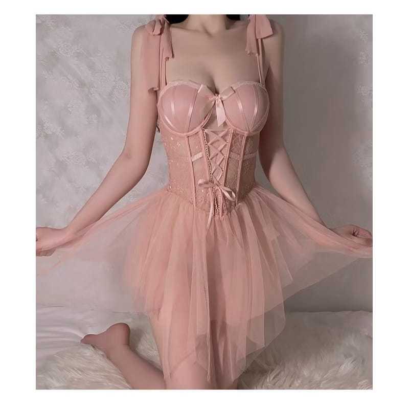 ( GROSIR LUCKY KODE #405 ) Sexy Lingerie Dress Nilon Wanita Dewasa / Baju NightGown Pushup Bra Transparan / Baju Dinas Mini Dress