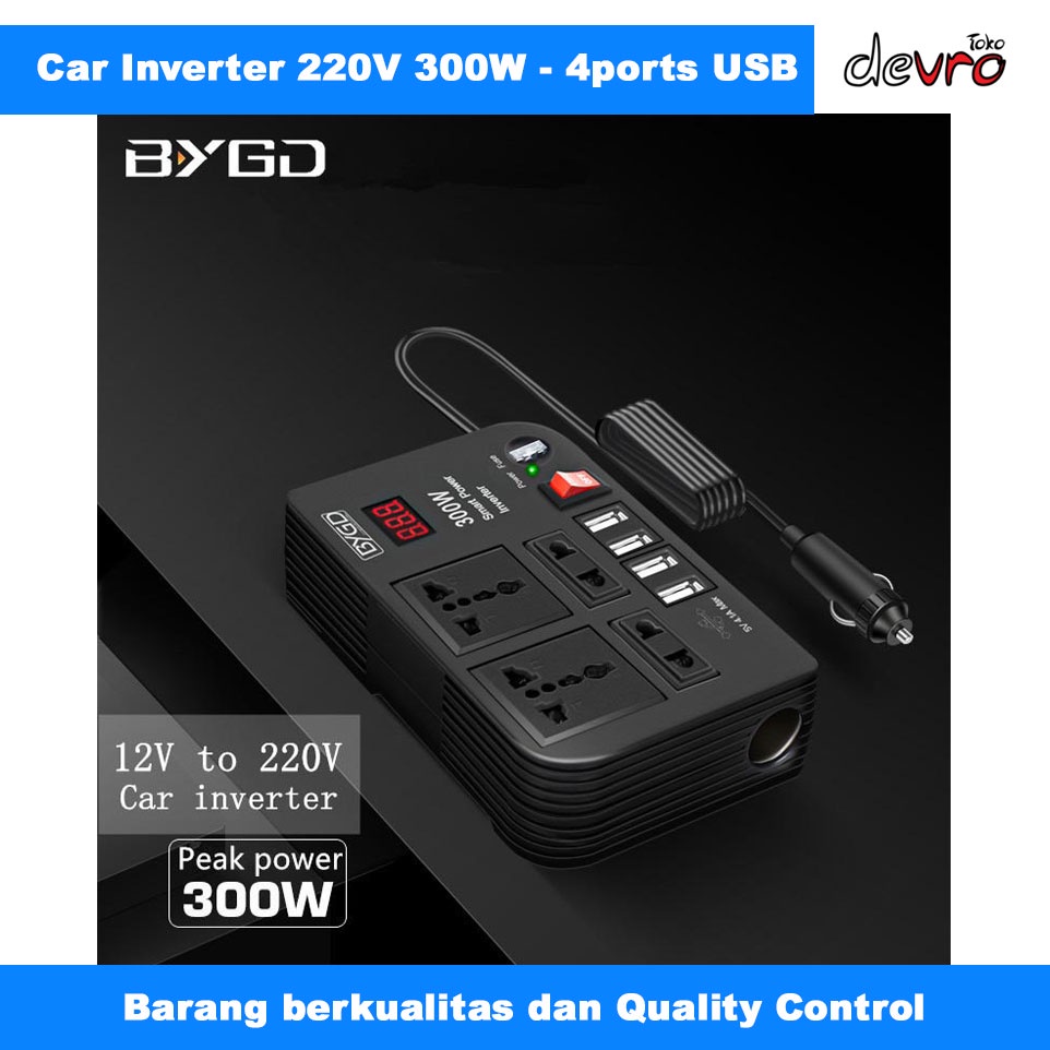 Car Power Inverter DC 12V to AC 220V 300W 4 USB Port - BYGD E8982