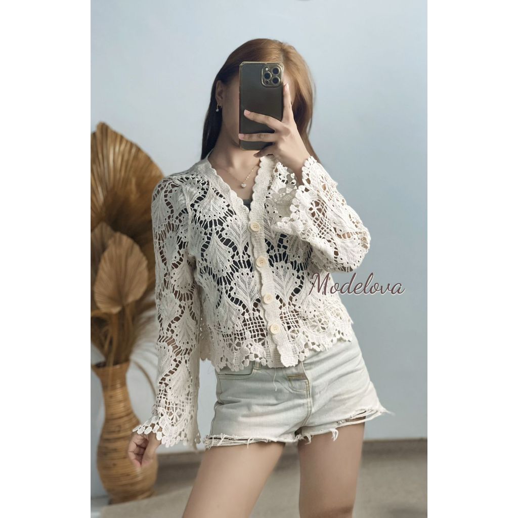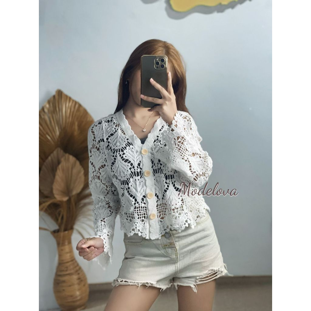 MDLV M00D72# Long Sleeve Crochet Cardigan