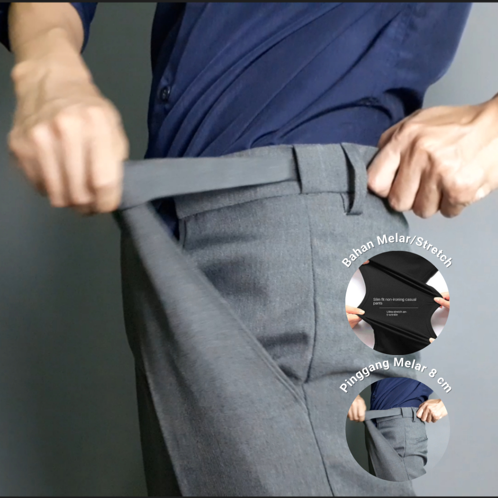 Bincoorank Celana Formal Bahan Melar/Stretch Slim Fit Pria Jumbo, Pinggang Melar Size 40-45