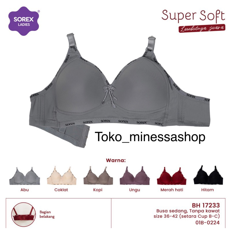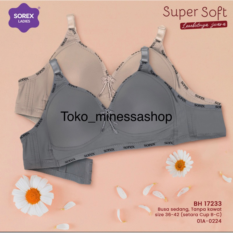isi 3PCS BRA SOREX 17233 TANPA KAWAT BUSA SEDANG CUP C KAIT 3 SUPER SOFT