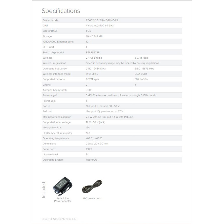 MikroTik RB 4011 iGS+ 5HacQ2HnD IN RB4011iGS+5HacQ2HnD-IN