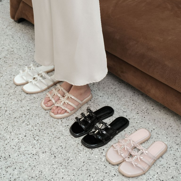 Aline Sabrina Sandal Slop Teplek Flat Shoes Wanita Korean Style