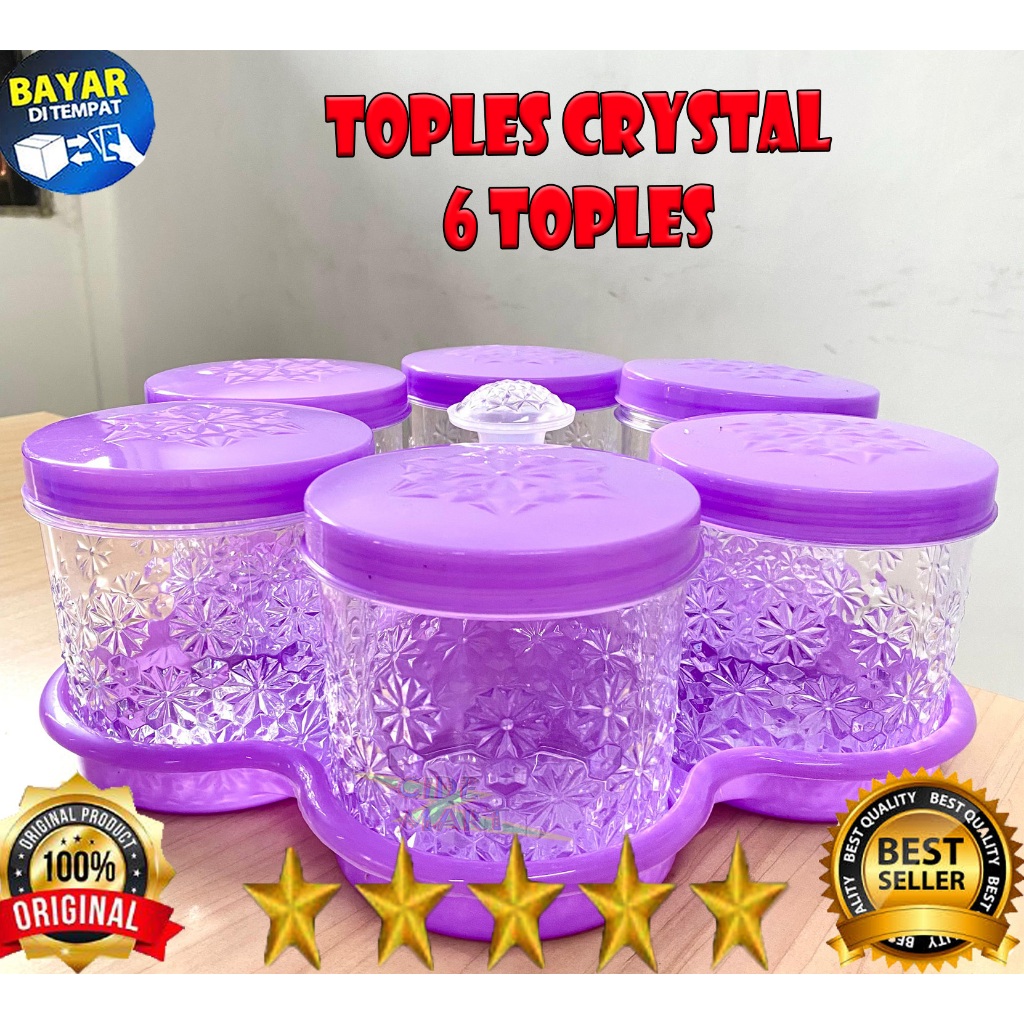 MC [SET 6 PCS] Toples Premium Bunga Kristal 6 Toples Set Nampan Toples Kue Kering Toples 6 Daun