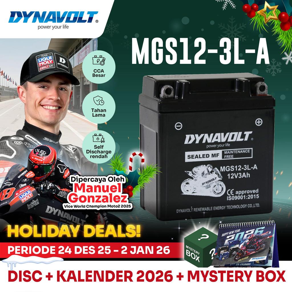 DYNAVOLT Aki Motor YAMAHA RX King, SUZUKI Satria 2 Tak, dll | MGS12-3L-A | 3 AH 35-80 CCA
